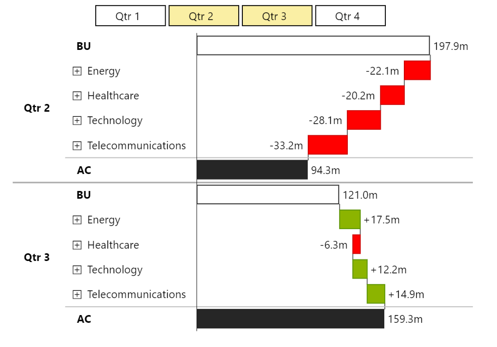 Two Measure Delta Waterfalls for Q2 and Q3 without concatenation