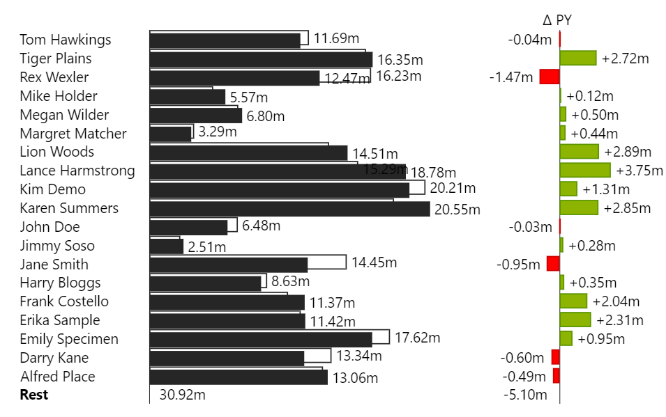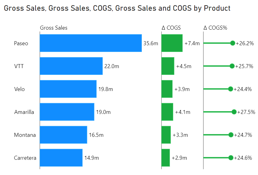 <table><thead><tr><th width="403">Chart</th><th>Description</th><th data-hidden></th></tr></thead><tbody><tr><td><img src="https://3415705954-files.gitbook.io/~/files/v0/b/gitbook-x-prod.appspot.com/o/spaces%2F9tIV2XT53haGp6nlAPXL%2Fuploads%2Fgit-blob-bdadf3035d0b456dfc747ec7e93d15ac9a7fafa4%2Fimage.png?alt=media" alt="" data-size="original"></td><td><a href="quick-examples/waterfalls-in-columns">Waterfalls in Columns</a></td><td></td></tr><tr><td><img src="https://3415705954-files.gitbook.io/~/files/v0/b/gitbook-x-prod.appspot.com/o/spaces%2F9tIV2XT53haGp6nlAPXL%2Fuploads%2Fgit-blob-ba1c5d4ff23d63c83d0198d64e90692bbcc67d64%2Fimage.png?alt=media" alt="" data-size="original"></td><td><a href="quick-examples/products-stacked-by-segments">Products Stacked by Segments</a></td><td></td></tr><tr><td><img src="https://3415705954-files.gitbook.io/~/files/v0/b/gitbook-x-prod.appspot.com/o/spaces%2F9tIV2XT53haGp6nlAPXL%2Fuploads%2Fgit-blob-88c8d5279d26a8f7143733c4b980081868dc6f7a%2Fimage.png?alt=media" alt="" data-size="original"></td><td><a href="quick-examples/comparing-quarters">Comparing Quarters</a></td><td></td></tr><tr><td><img src="https://3415705954-files.gitbook.io/~/files/v0/b/gitbook-x-prod.appspot.com/o/spaces%2F9tIV2XT53haGp6nlAPXL%2Fuploads%2Fgit-blob-fbe1ca3eb1c97702a4080093f6f2089feaae4655%2Fimage.png?alt=media" alt="" data-size="original"></td><td><a href="quick-examples/comparing-measures">Comparing Measures</a></td><td></td></tr><tr><td><img src="https://3415705954-files.gitbook.io/~/files/v0/b/gitbook-x-prod.appspot.com/o/spaces%2F9tIV2XT53haGp6nlAPXL%2Fuploads%2Fgit-blob-b6a84ac9c0702b85055a83a3012b919529236006%2Fimage.png?alt=media" alt="" data-size="original"></td><td><a href="quick-examples/delta-waterfall-by-drill-down-combination">Delta Waterfall by Drill Down Combination</a></td><td></td></tr><tr><td><img src="https://3415705954-files.gitbook.io/~/files/v0/b/gitbook-x-prod.appspot.com/o/spaces%2F9tIV2XT53haGp6nlAPXL%2Fuploads%2Fgit-blob-16cba585cf4101e24db4bb035f5a8e8ce11bf43d%2Fimage.png?alt=media" alt=""></td><td><a href="quick-examples/ibcs-bar-chart">IBCS Bar Chart</a></td><td></td></tr></tbody></table>