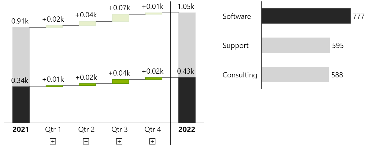 When drill mode is off, you can select elements in the main chart, to filter other visuals.